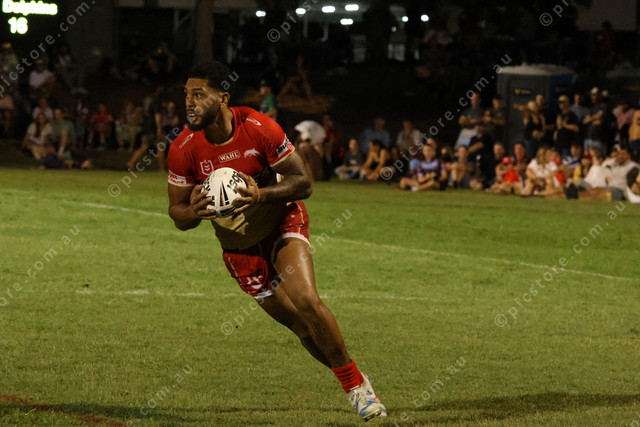 Ethan Quai-Ward brings the ball back up the field for the Dolphins.