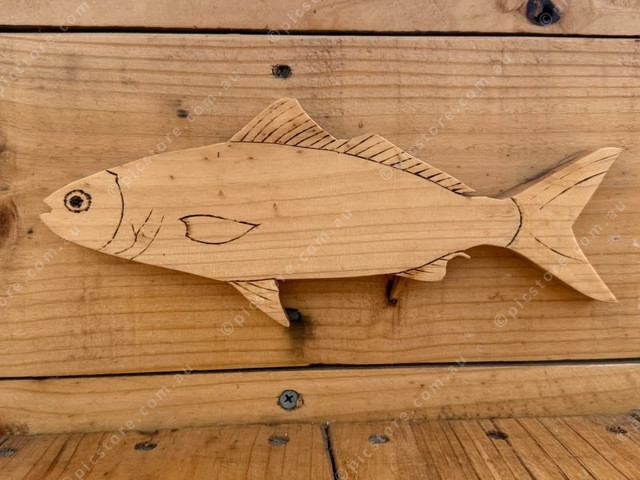 A close up of the fish artwork by local carpenter Pete Muenchow. (Dee Elferink:528652_02)