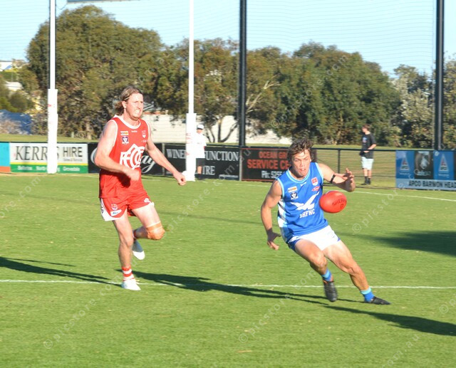 Lachie Wilson gets there before Jai Hale. (Justin Flynn) 476565_16