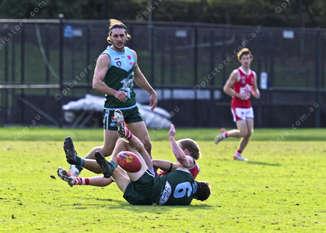 Liam Cogan puts a strong tackle on Harry Cashin (Ivan Kemp) 477690_03