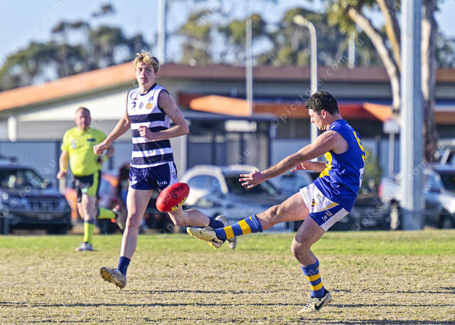 Harry Purcell kicks a goal for North Shore (Ivan Kemp) 485240_02
