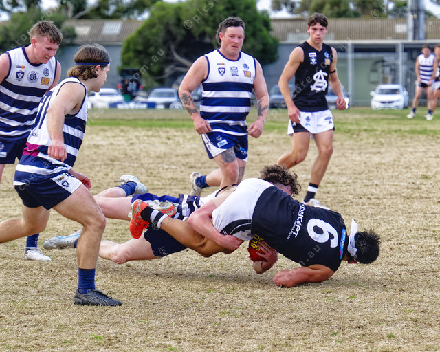 Brock McDonald is taken to ground in a tackle (Ivan Kemp) 489439_12