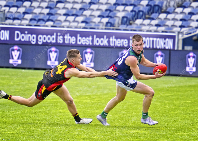 Patrick Dowling looks for a handball as he is tackled by Harrison Smith (Ivan Kemp) 505082_12