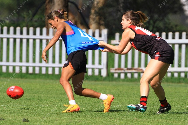 DRAG: A Rovers’ player gets jersey dragged by a Bloods defender. (Phil Williams: 473078_03)