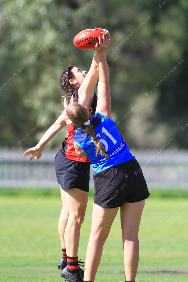 HITOUT: A ruck contest in a rematch of the 2024 CAFL Grand Final. (Phil Williams: 473078_04)