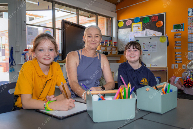 L-R Lily yr4, Sharma Hall Community Liaison Officer and Charlotte yr2.