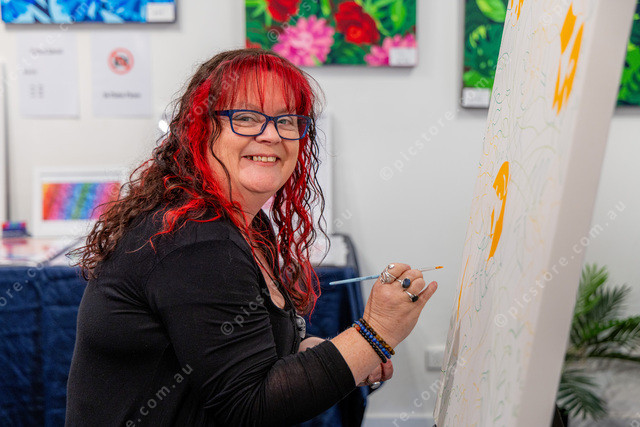 Debra Ferry from Avonsleigh painting in the Art Show.
