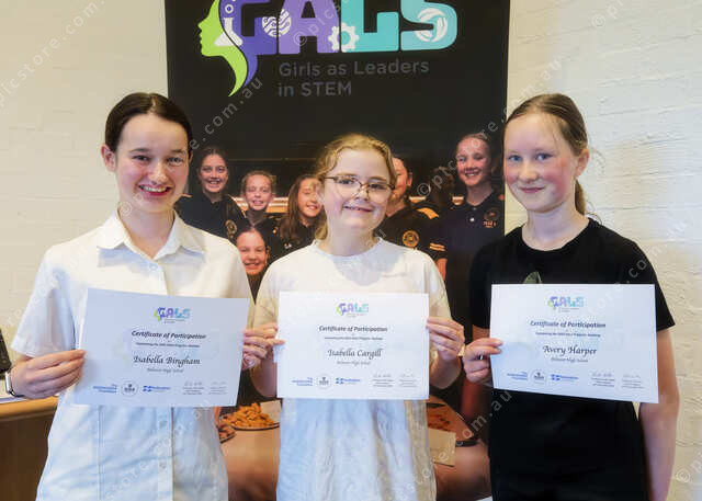 Belmont High School students Isabella Bingham, Isabella Cargill and Avery Harper with their certificates (Ivan Kemp) 523169_03