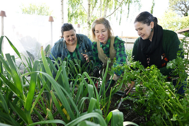 Kyneton Community House community garden. Pic of CEO Claire Rawlinson, Jo McErvale garden coordinator and Casey Grana admin coordinator. (Damjan Janevski). 513015_02