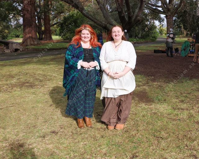 Kerryn Roberts, Lillydale, with President of the Re-Enactment Society, Bobby Field.
