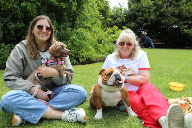 Abril Battelli, from Argentina, holding Murphy and Wendy Bell from Wallacedale holding Winnie,