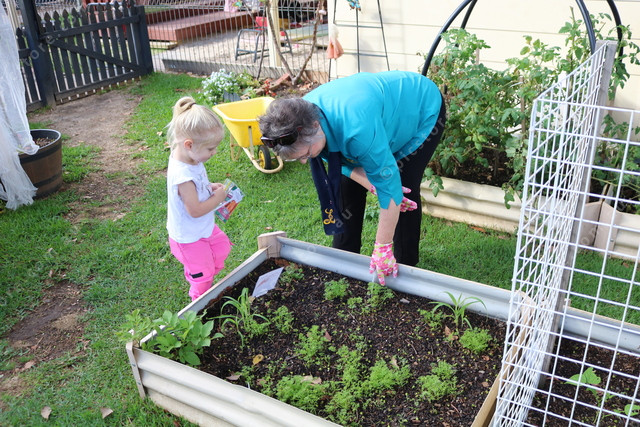 Garden Granny Gayle helps Harper do some planting. (Elisabeth Champion)