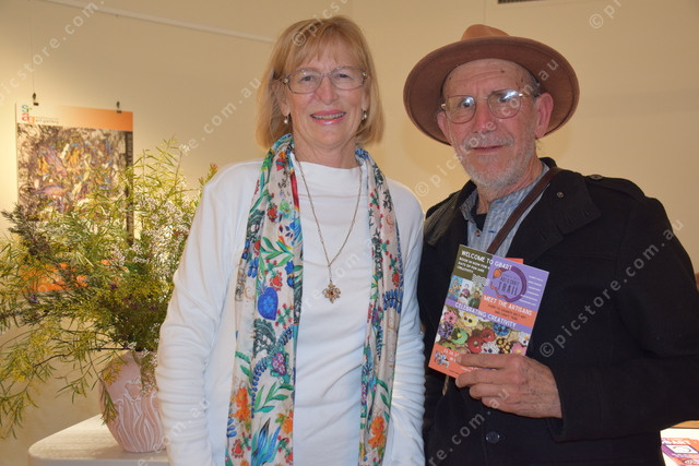 Committee member Roz Wilson welcomed artist Gabriele Trabucco to the launch of the 2025 Granite Belt Arts Trail program. (Samantha Wantling: 498688)
