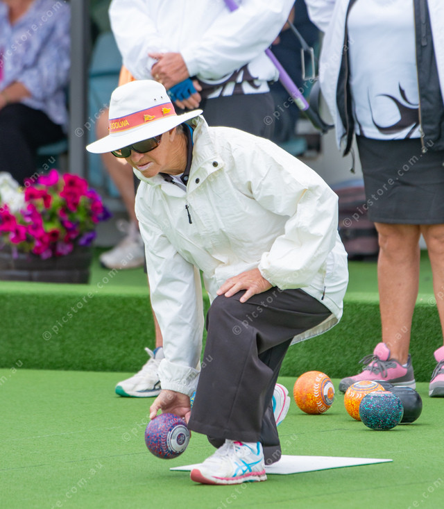 Jan Baskerville places the ball on the Goolwa greens. 464013_02