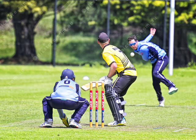 Lachie Sperling bowls to Jordan Moran (119 runs) (Ivan Kemp) 512922_02