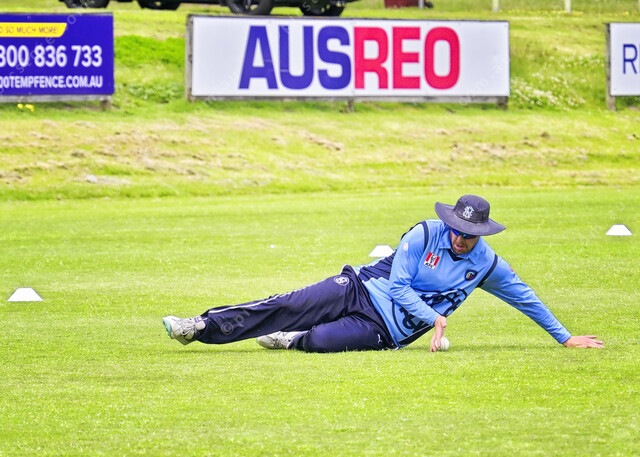Lachie Sperling stops the ball inside of the boundary (Ivan Kemp) 512922_12