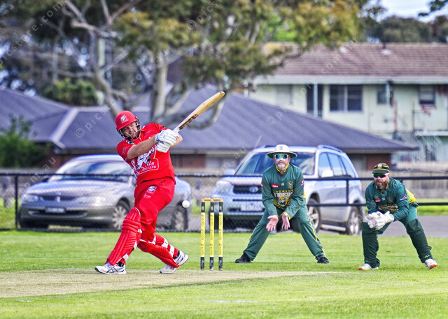 Anthony Grace swings and misses this delivery (Ivan Kemp) 512918_01