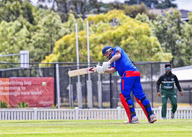 Ben Muir lofts the ball down the ground to be out caught for 20 runs (Ivan Kemp) 521155_06