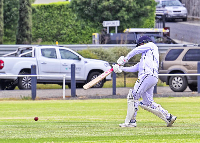 Lachie Cameron steps down the wicket and drives (Ivan Kemp) 521174_16