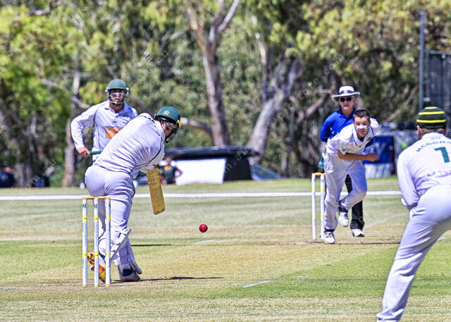 Owen Dunipace gets right behind this delivery (Ivan Kemp) 525380_04