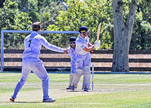 Seb Hutley is bowled around his legs by Josh McDonald for a duck (Ivan Kemp) 525380_17