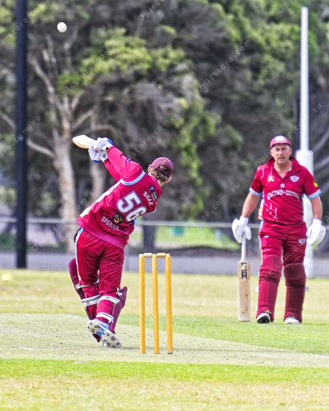 Cam Egan lofts this delivery for 4 runs (Ivan Kemp) 518047_04