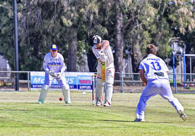 Ryan Mallon plays defensively to the Ricky Kennedy delivery (Ivan Kemp) 521180_03