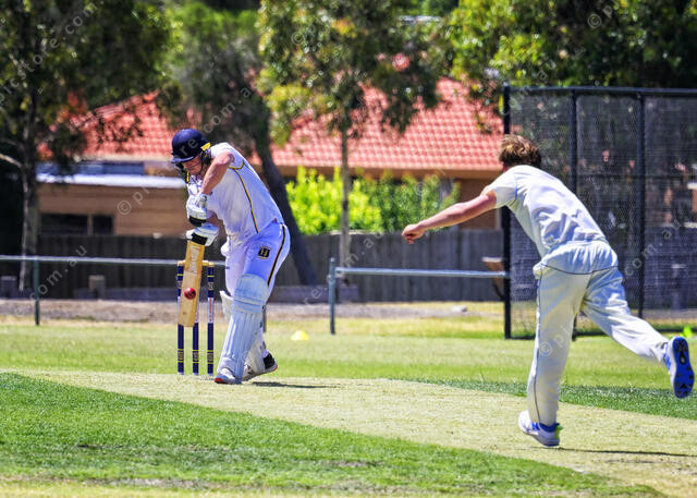 Brady Somers (44 runs) drives Riley East for a single (Ivan Kemp) 454516_01