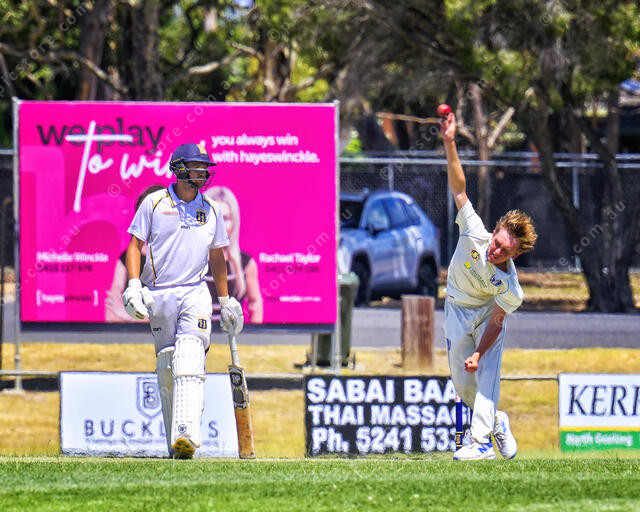 Riley East (0 for 27 off 9 overs) in action (Ivan Kemp) 454516_02