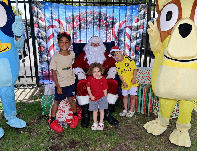 Dallas, Father Christmas, Darcy and Taj, all of Goolwa at the Christmas Pageant. (Mark Liebich 523374_03)