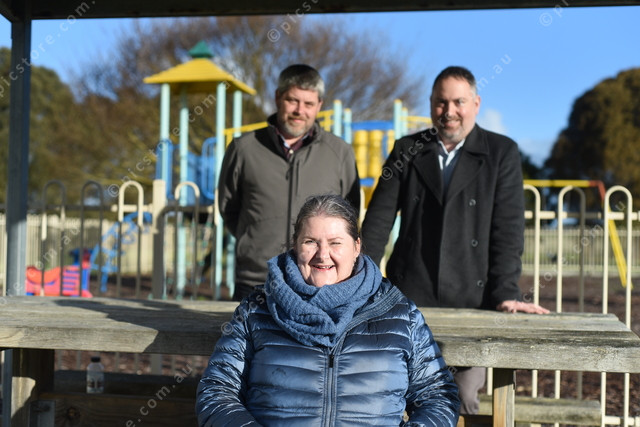 District Council of Grant mayor Kylie Boston and chief executive officer Darryl Whicker and assets officer Michael Overland look forward to the future of the region’s playgrounds. (Charlotte Varcoe 491990)