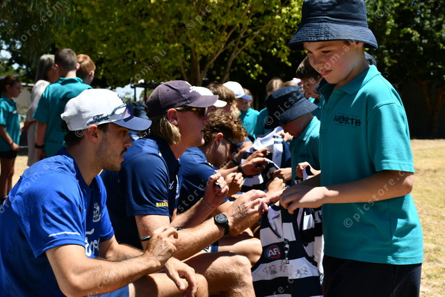 John Membrey gets his Geelong Cats shirt signed by the players.