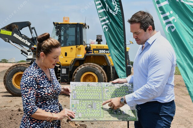 GemLife Managing Director and Group CEO Adrian Puljich and Bundaberg Mayor Helen Blackburn with the development plan. (Tahlia Facer: 514847)