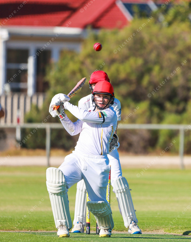 Mount Compass batsman Josh Leister-Mitchell cracks the ball back down the ground. 467640_12