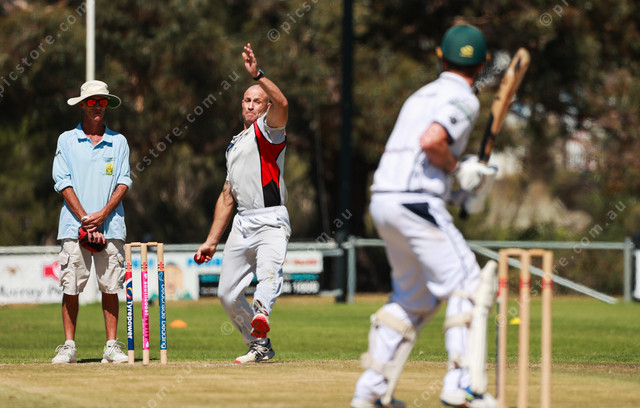 Port Elliot’s Simon Donaldson looks to hit a length in the A Grade grand final. 467640_18