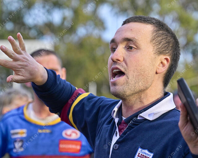Andy Walsgott provides instructions to his players at 3/4 time (Ivan Kemp) 486859_23