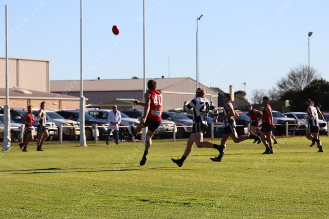 Cummins Kapinnie Jack Green kicks the ball at goal, while Ramblers Zakk Bullard chases him. (486172_05)