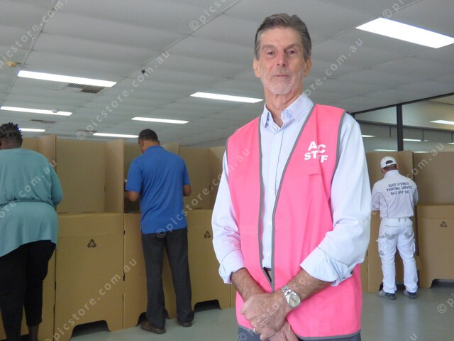 ELECTION: Australian Electoral Officer for the NT Geoff Bloom visiting the Alice Springs early voting centre. (Charles Geary: 475328_01)