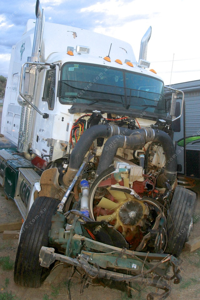 CRUNCHED: The crunched front end of the prime mover that collided with the Ghan in September 2024. (PIC: PHIL WILLIAMS 534661_03)