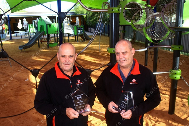 AWARDED: Gillen Club joint managers, David and Ian McCormack in the GC’s upgraded playground. (PIC: PHIL WILLIAMS 482763_01)