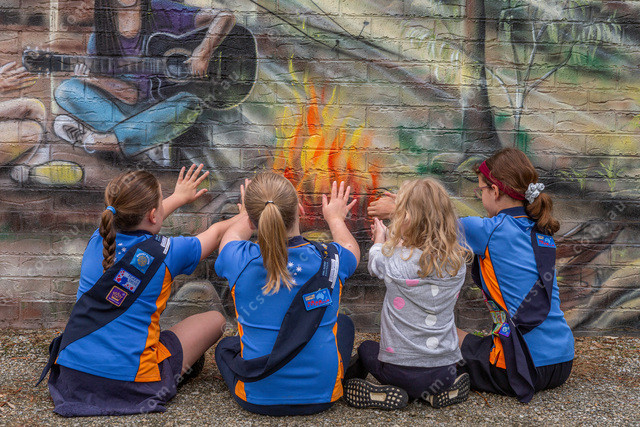 L-R Around the camp fire Mia, Miley, Khloe and Kat.