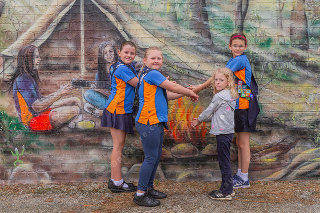 L-R Around the camp fire Mia, Miley, Khloe and Kat.