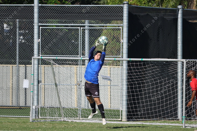 Central’s shot stopper Felix Sykes rises high to take a catch.