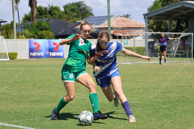 Clinton’s Ally Ware and Bluebirds’ Addison Van Itallie in a battle for possession.