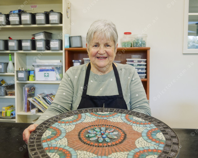 Sue Chreszczyk with a mandala created by Sue and Helen Davis (Ivan Kemp) 496559_05