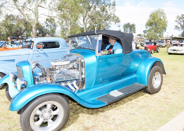 Jean Wilson inside 1929 model A roadstar which they drove all the way from Darwin.