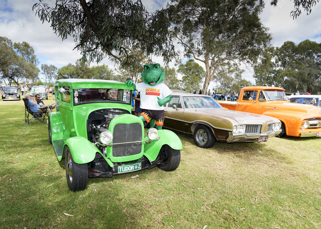 Gerald Goanna gives a big thumbs up to the Nowinge Place Show and Shine