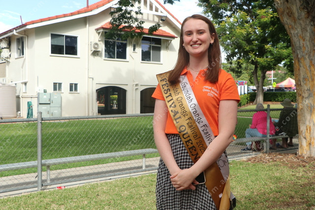 Gayndah’s 2025 Orange Festival Queen Eve Spry, a physiotherapist who represents the Wide Bay Hospital and Health Service. (Julian Lehnert: 476340_01)