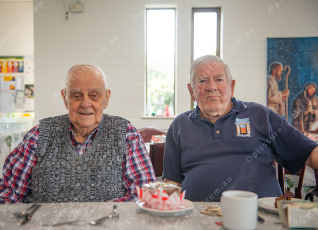 Aubrey Simonds and Bruce Scotland at the Goolwa Uniting Church. (Jack Church 524056_04)