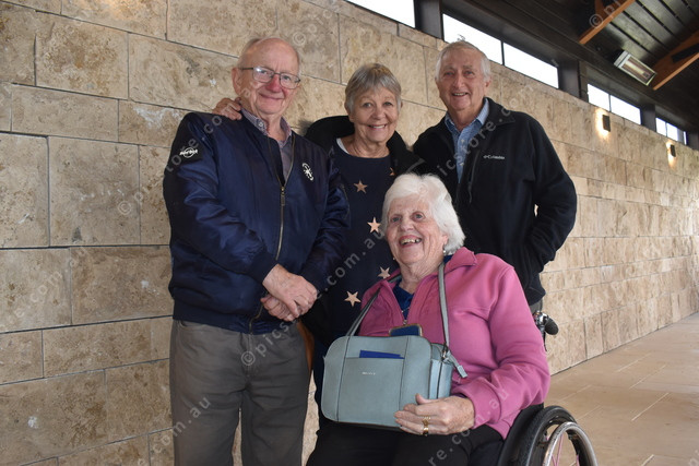 Nine time Paralympic gold medallist Libby Kosmala at Taylors Wines for her first Gourmet Week. She is flanked by Stan Kosmala, Libby Netter and Bob Netter. (Jarrad Delaney: 478656)